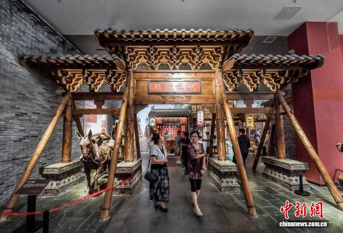 8月26日,搭客正在黑鲁木全市专物馆创立的仿古铺旧中观光。中新社记者 刘新 摄
